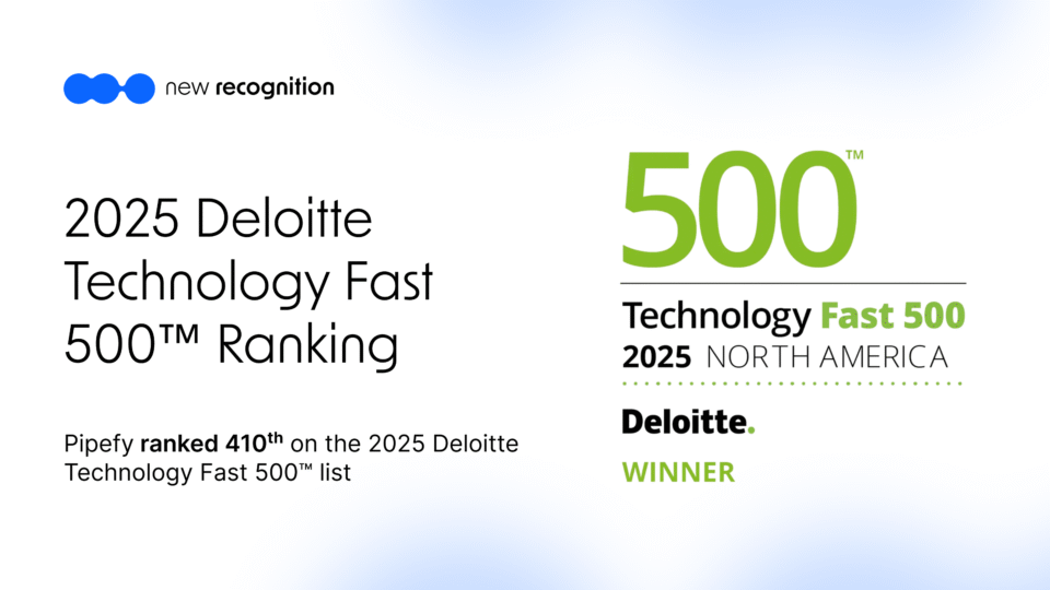 Pipefy has been recognized at the 410th position in the 2025 Deloitte Technology Fast 500™, a ranking that celebrates the 500 fastest-growing companies in technology, media, telecommunications, life sciences, fintech, and energy across North America.