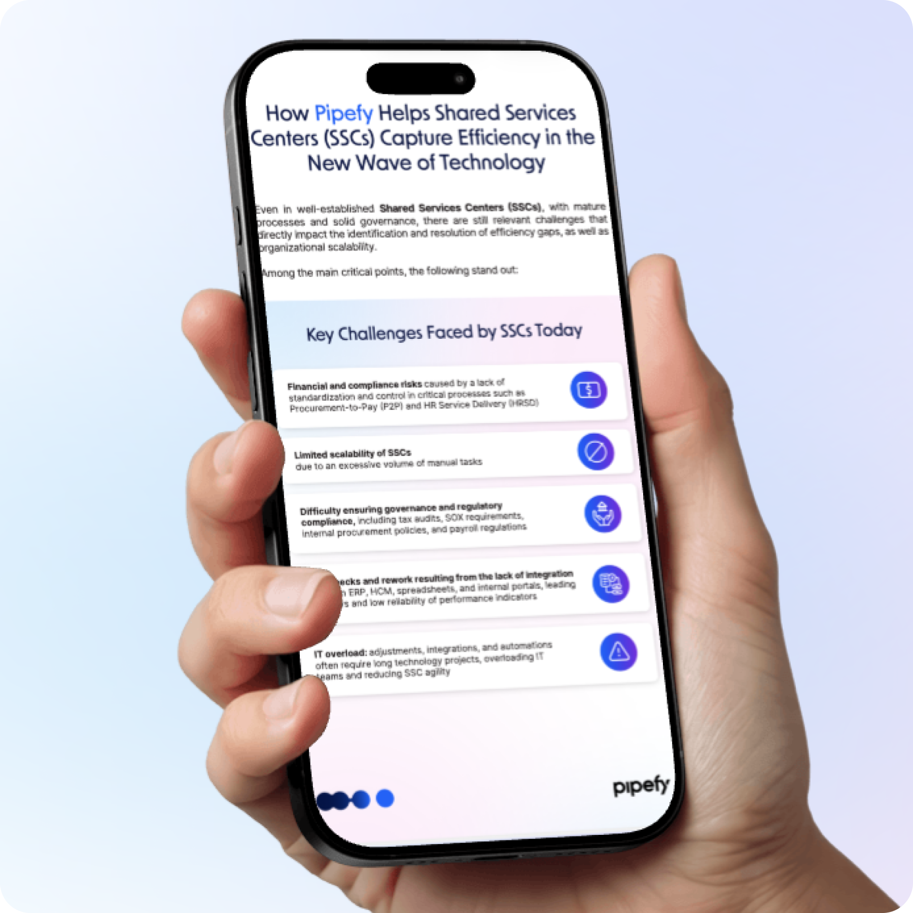 To dive deeper into how your organization can modernize these operations, we invite you to read this exclusive one-pager: “How Pipefy Helps Shared Services Centers (SSCs) Capture Efficiency in the New Wave of Technology”.
