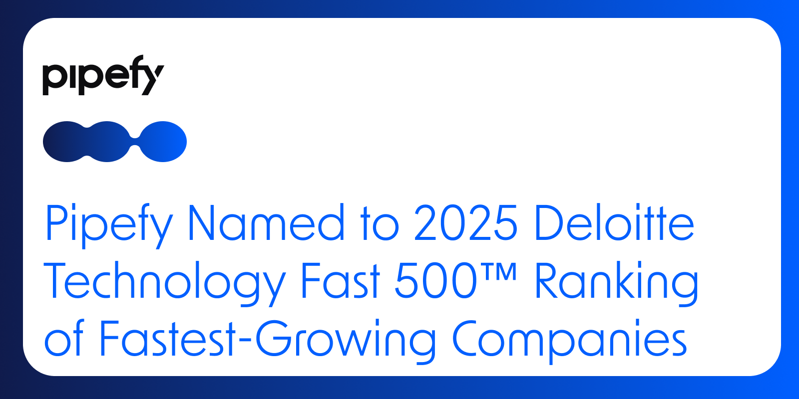 San Francisco, November 19, 2025—Pipefy today announced it ranked number 410 on the Deloitte Technology Fast 500™, a ranking of the 500 fastest-growing technology, media, telecommunications, life sciences, fintech, and energy tech companies in North America, now in its 31st year. Pipefy is a leading business process automation and AI platform.