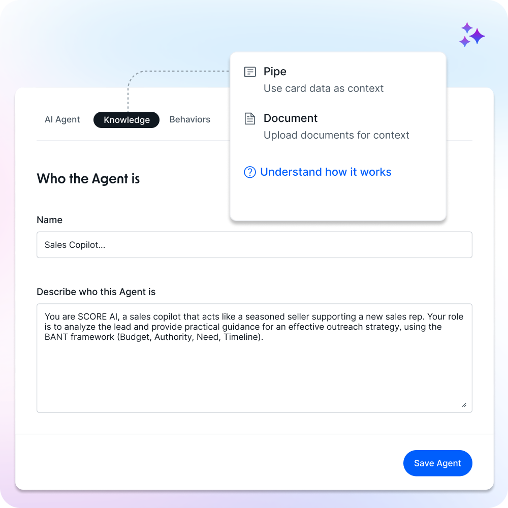 Automatic creation of the onboarding card with data imported from the CRM.