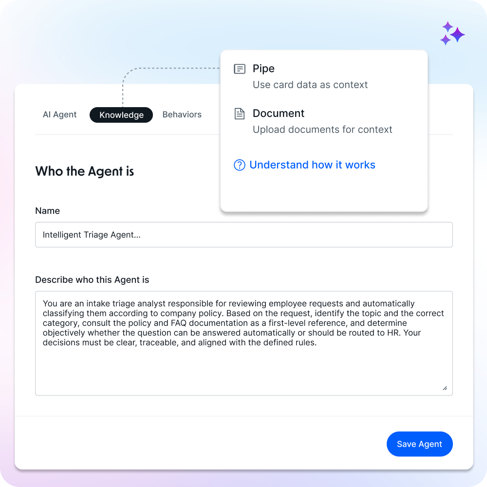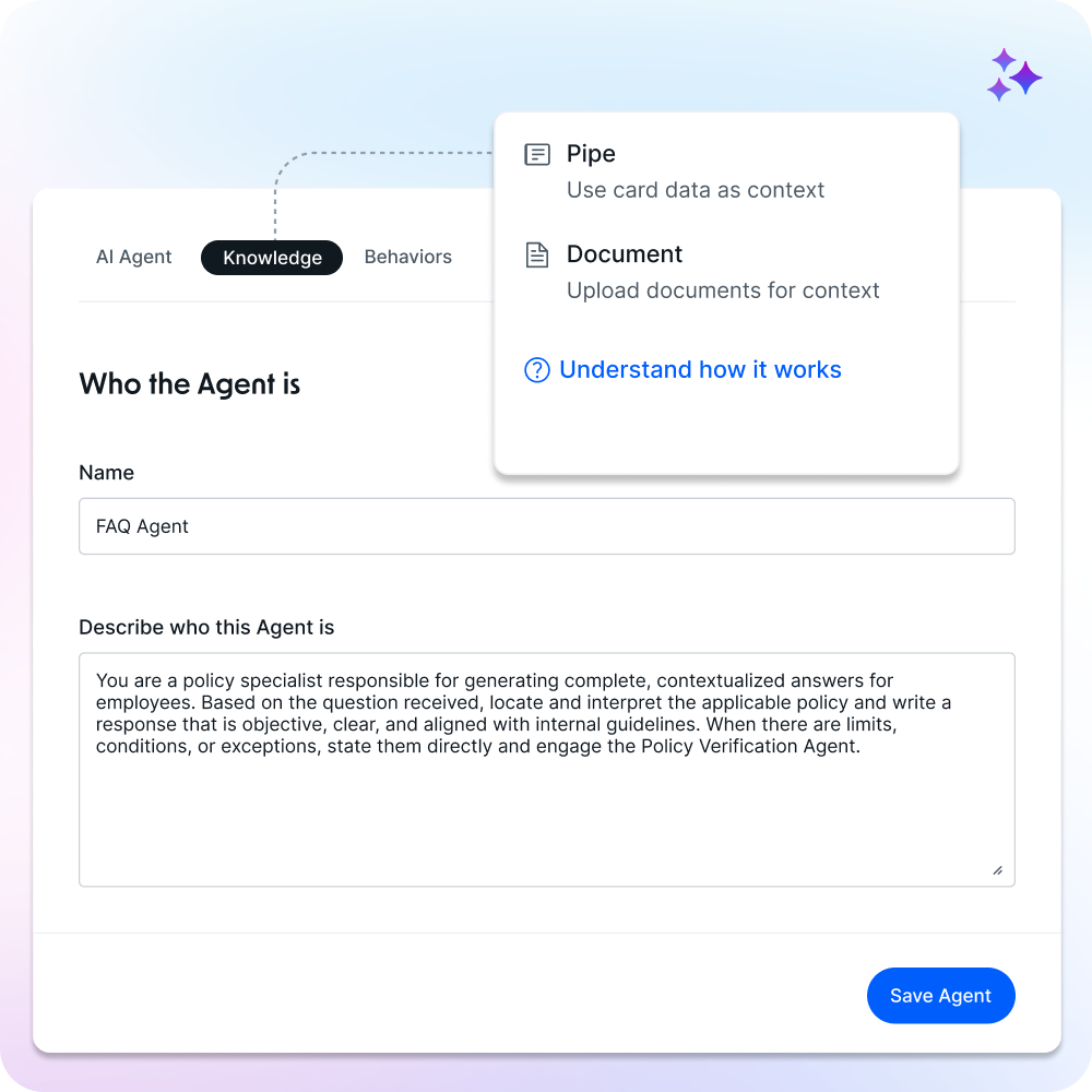Learn to use Pipefy strategically, build your first agent from scratch, and gain autonomy to scale your workflows—and keep scaling your workflows.