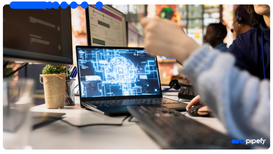 O Pipefy apresenta tecnologias de orquestração e automação de processos em um ambiente único e completo. A plataforma permite que a sua empresa entregue resultados com automação e IA em dias, não meses, conectando pessoas e sistemas críticos com total governança e segurança operacional.