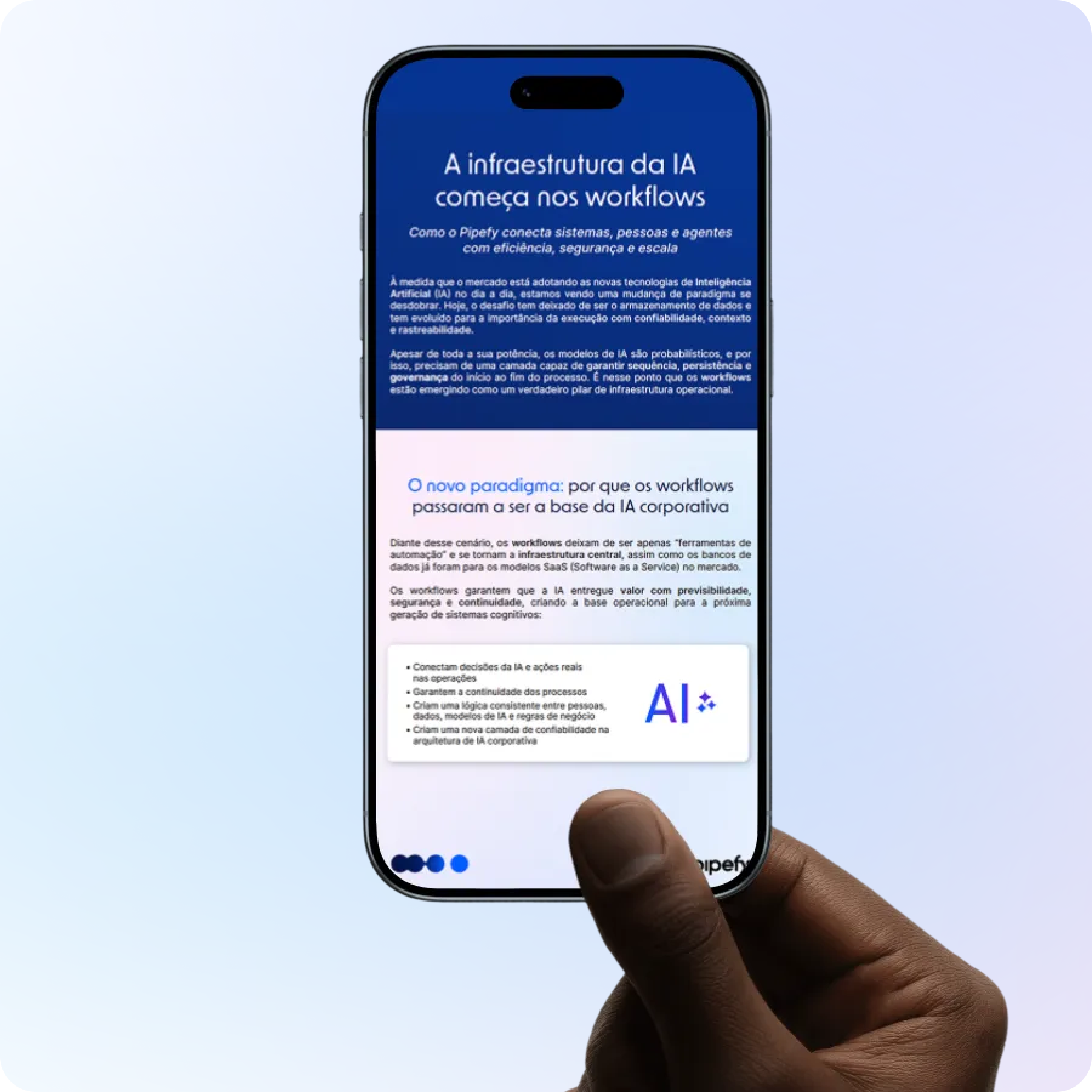 Para compreender como essa arquitetura funciona e por que os fluxos de trabalho são a base para o sucesso da automação moderna, preparamos um material exclusivo para se aprofundar: “A infraestrutura da IA começa nos workflows: como o Pipefy conecta sistemas, pessoas e agentes com eficiência, segurança e escala”.