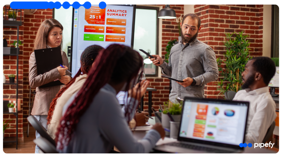 O Pipefy permite estruturar esse fluxo com pipelines visuais, formulários, regras e automações.