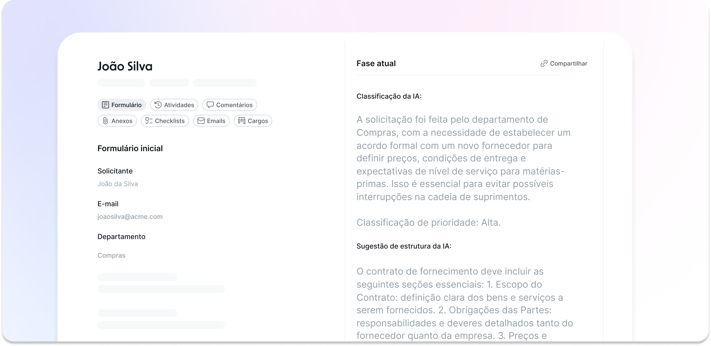 • IA identifica automaticamente o tipo de documento e sua prioridade
