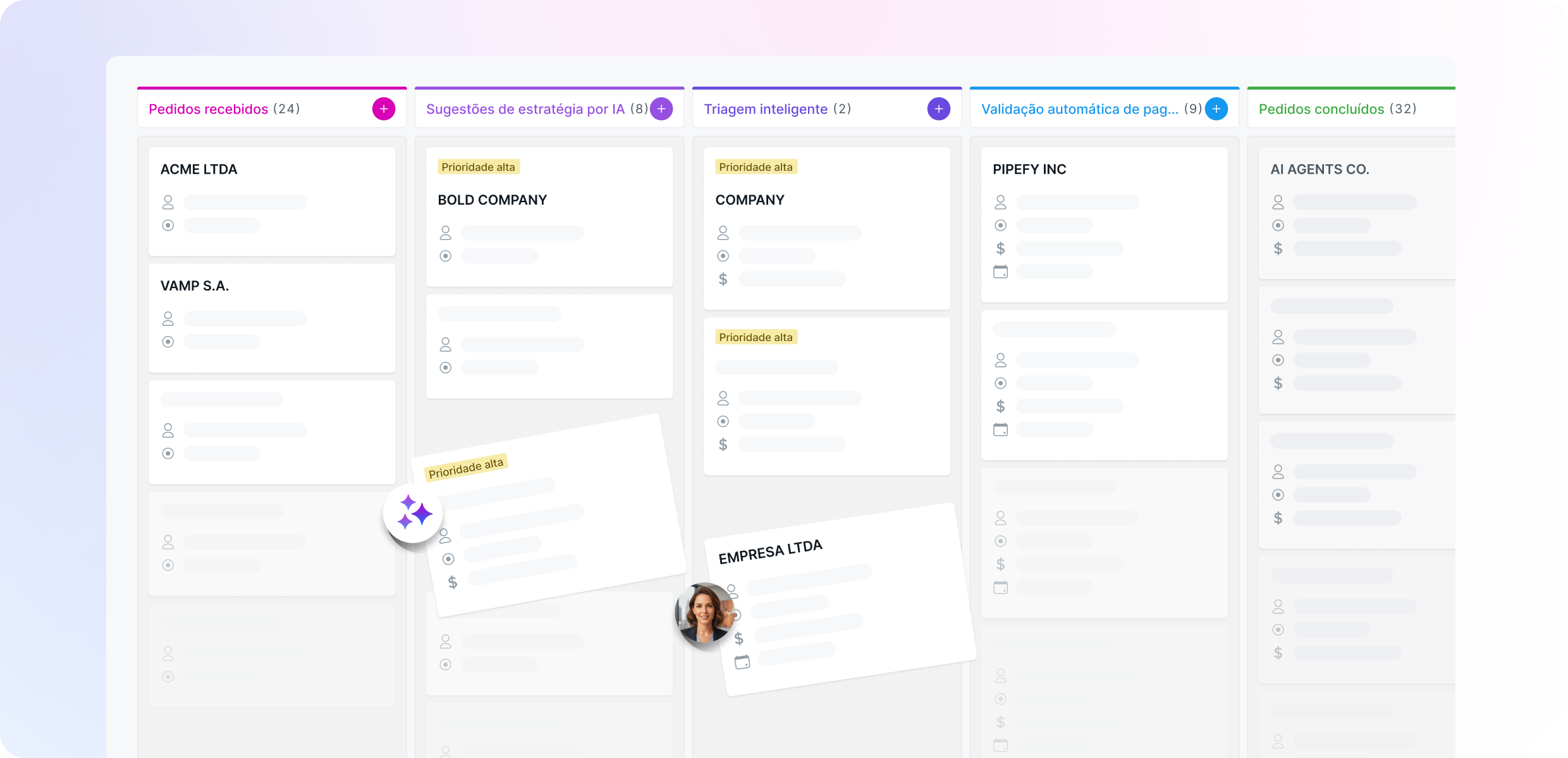 IA reduz o ciclo completo de dias para minutos, da entrada do pedido à conclusão.