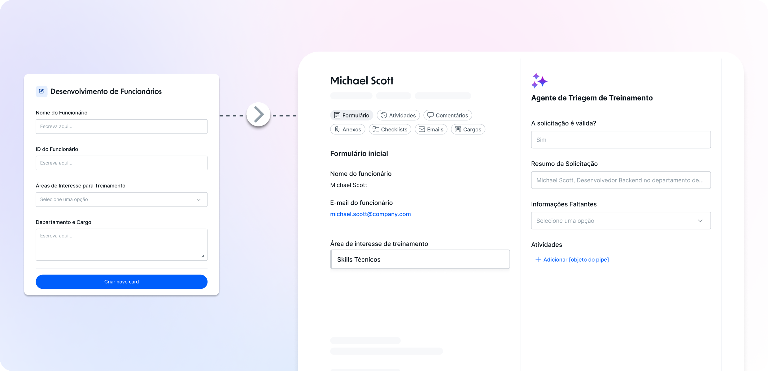 Criação automática de cards no pipe correto a cada nova solicitação