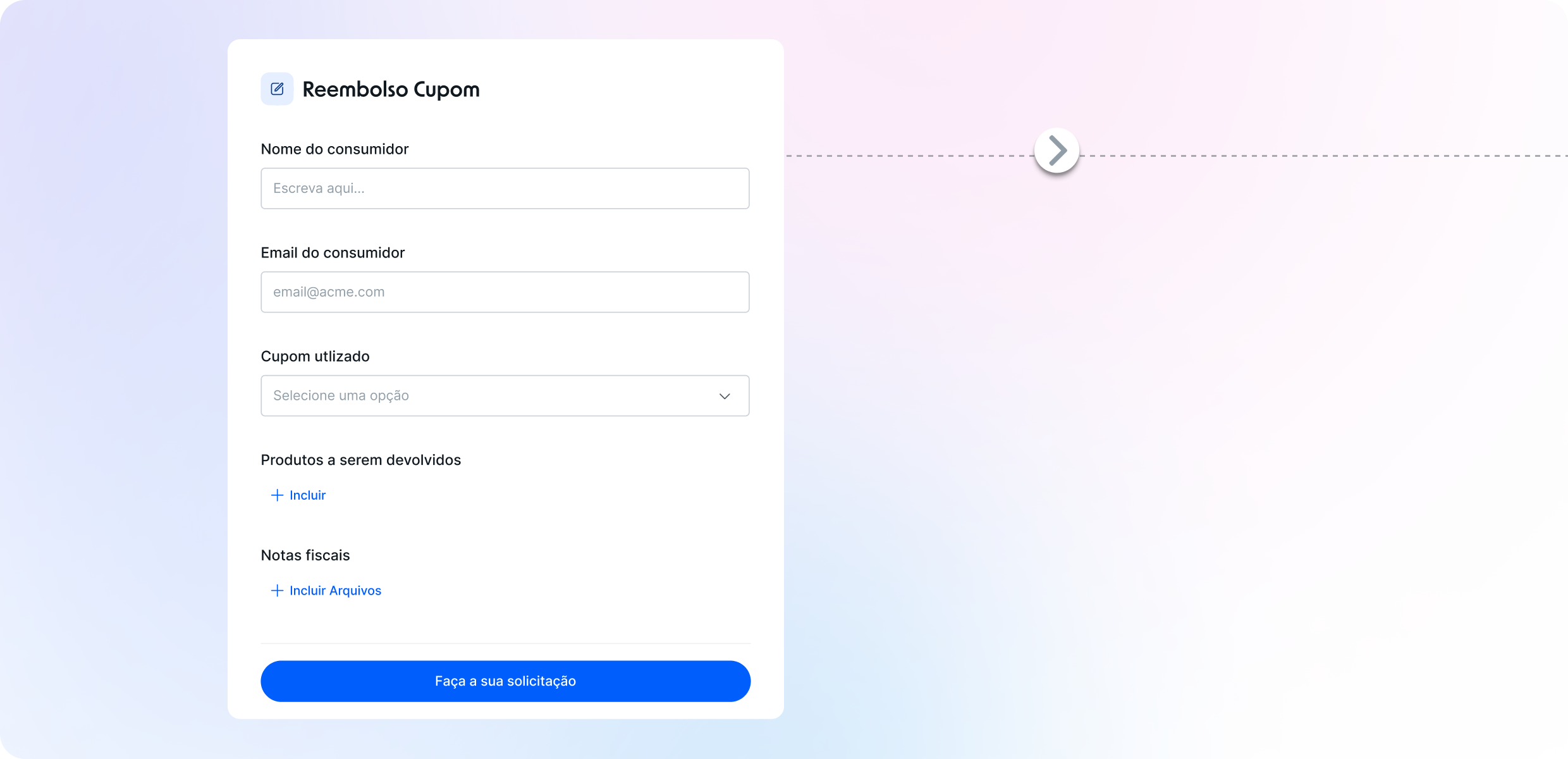 • Cliente preenche formulário padronizado